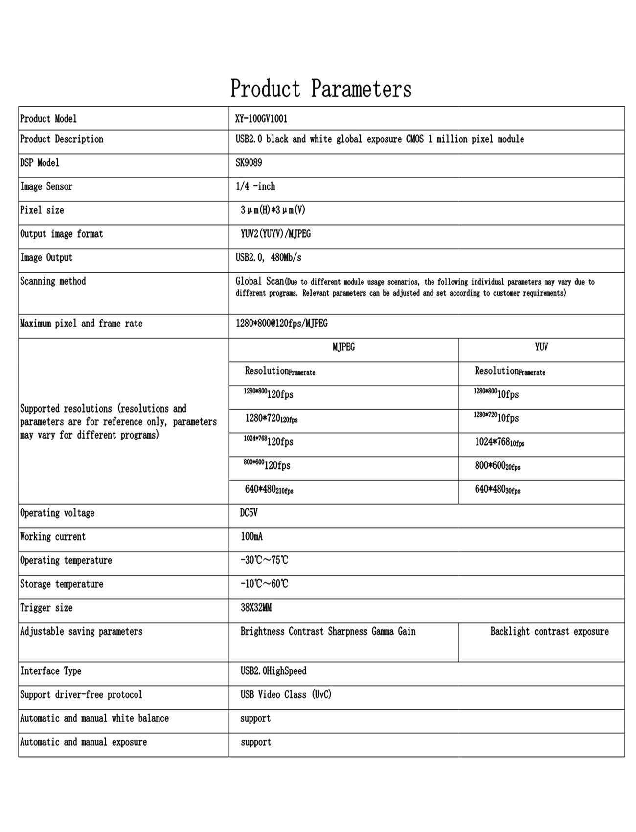 * Support color or black and white, MJPEG compression, H264 compression,