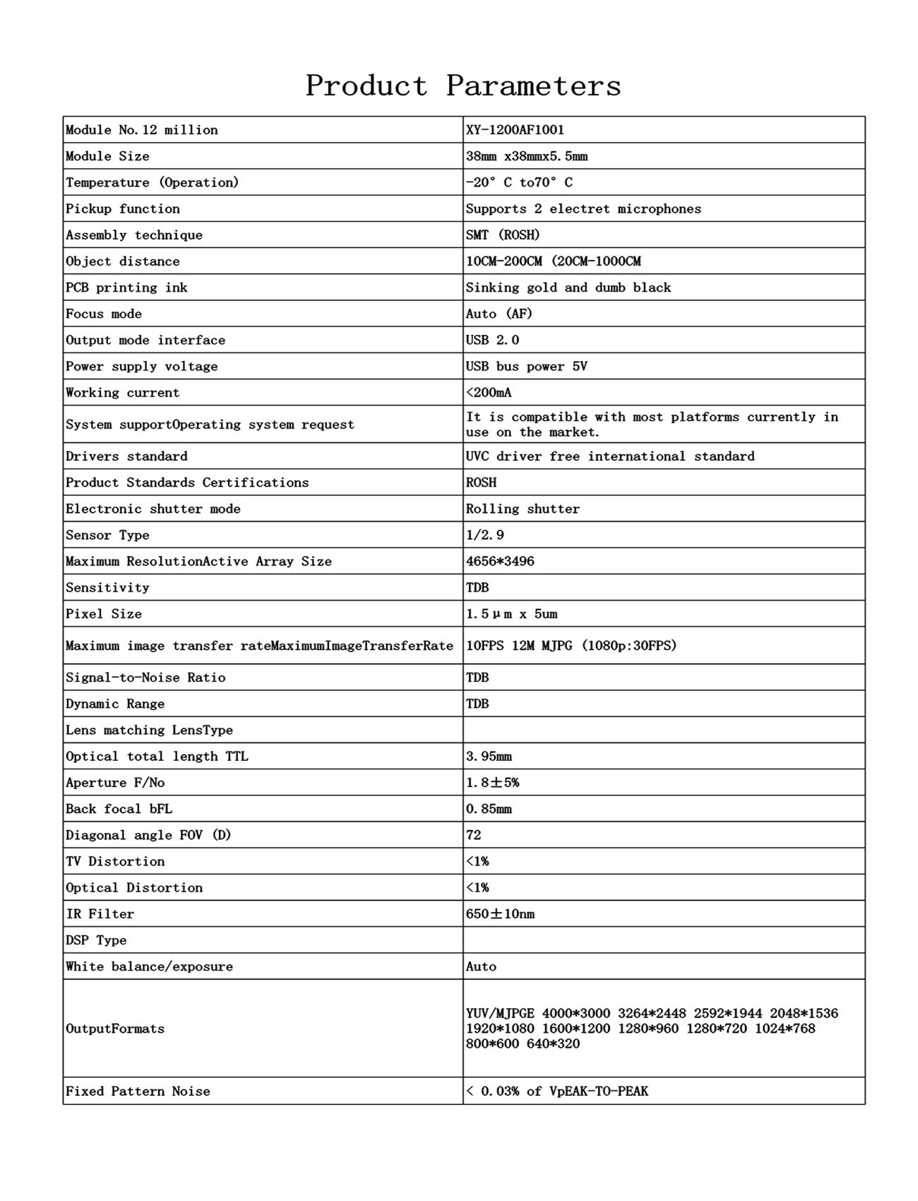 * Support video acquisition and recording, video conferencing, face recognition, infrared night vision,