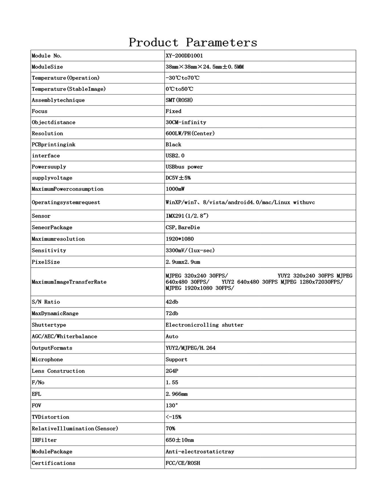 * Support video acquisition and recording, video conferencing, face recognition, infrared night vision,