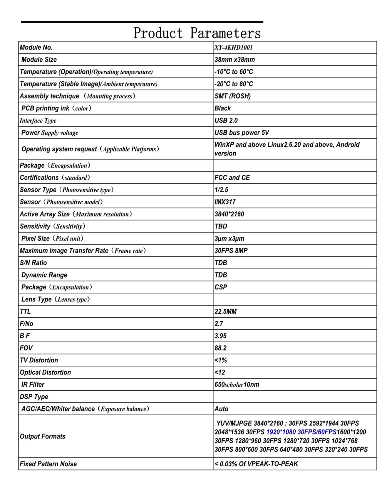 * Support video acquisition and recording, video conferencing, face recognition, infrared night vision,