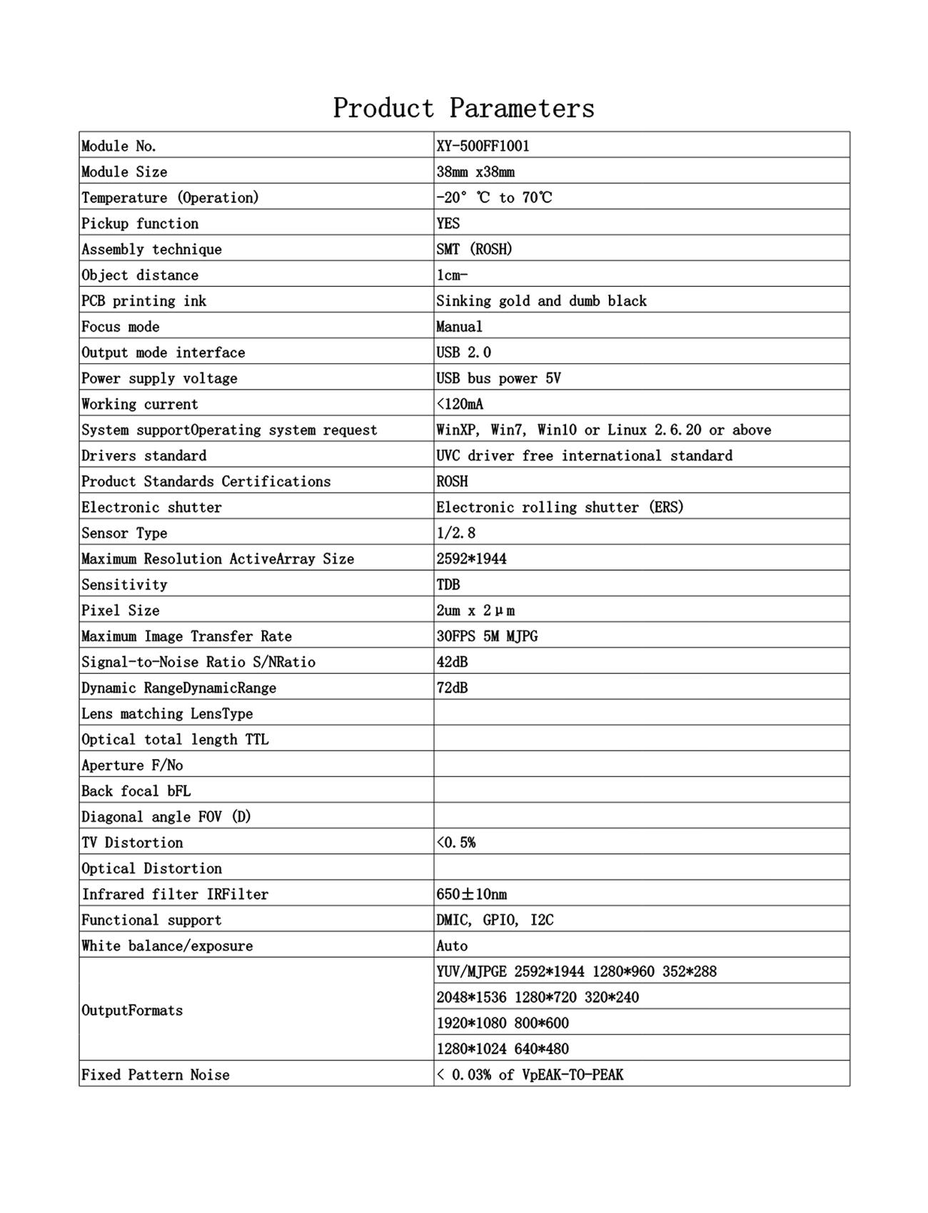 * Support color or black and white, MJPEG compression, H264 compression,