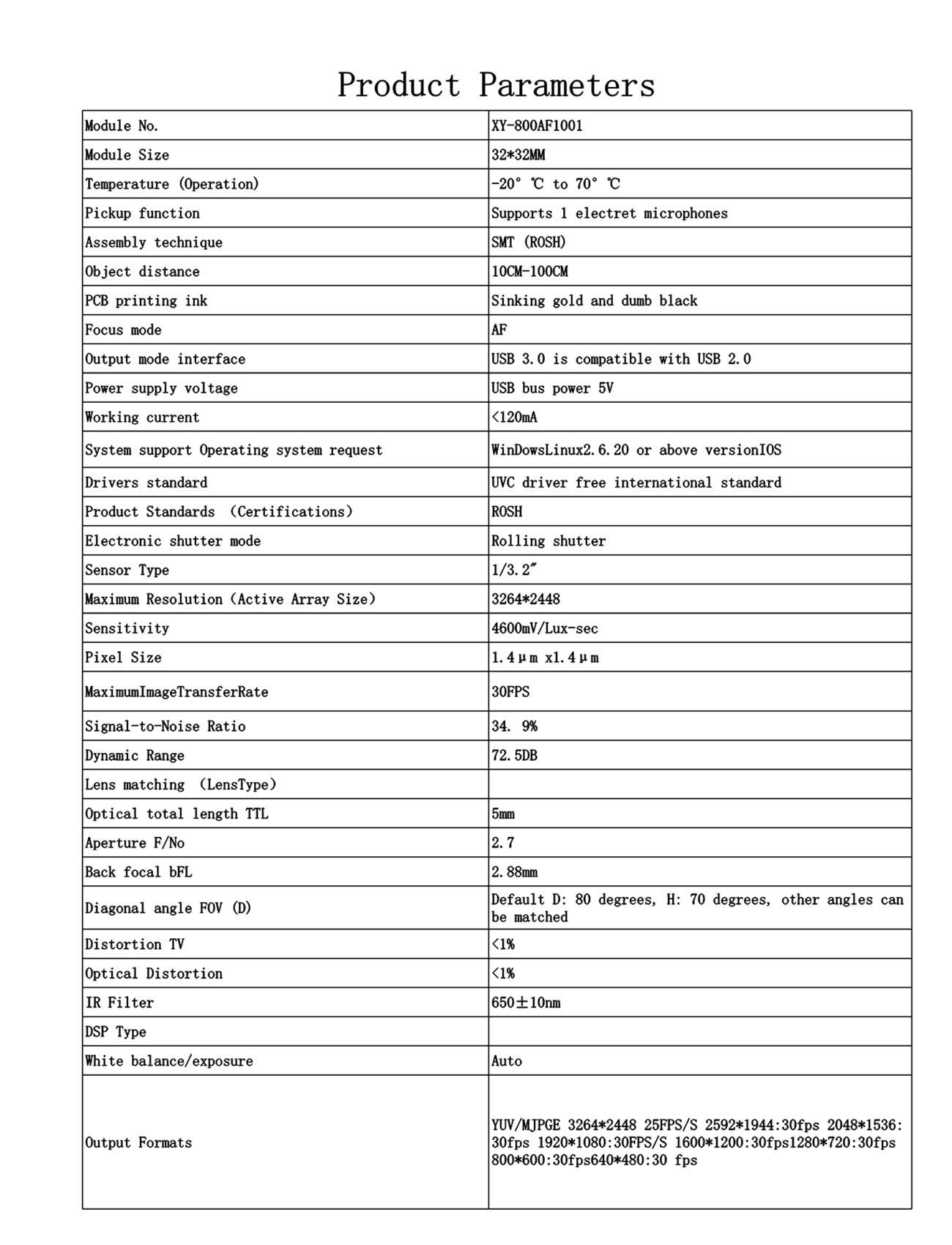 * Support video acquisition and recording, video conferencing, face recognition, infrared night vision,