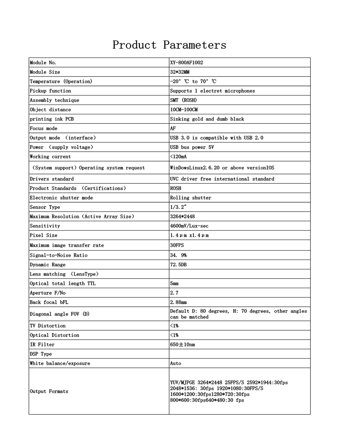 * Support video acquisition and recording, video conferencing, face recognition, infrared night vision,